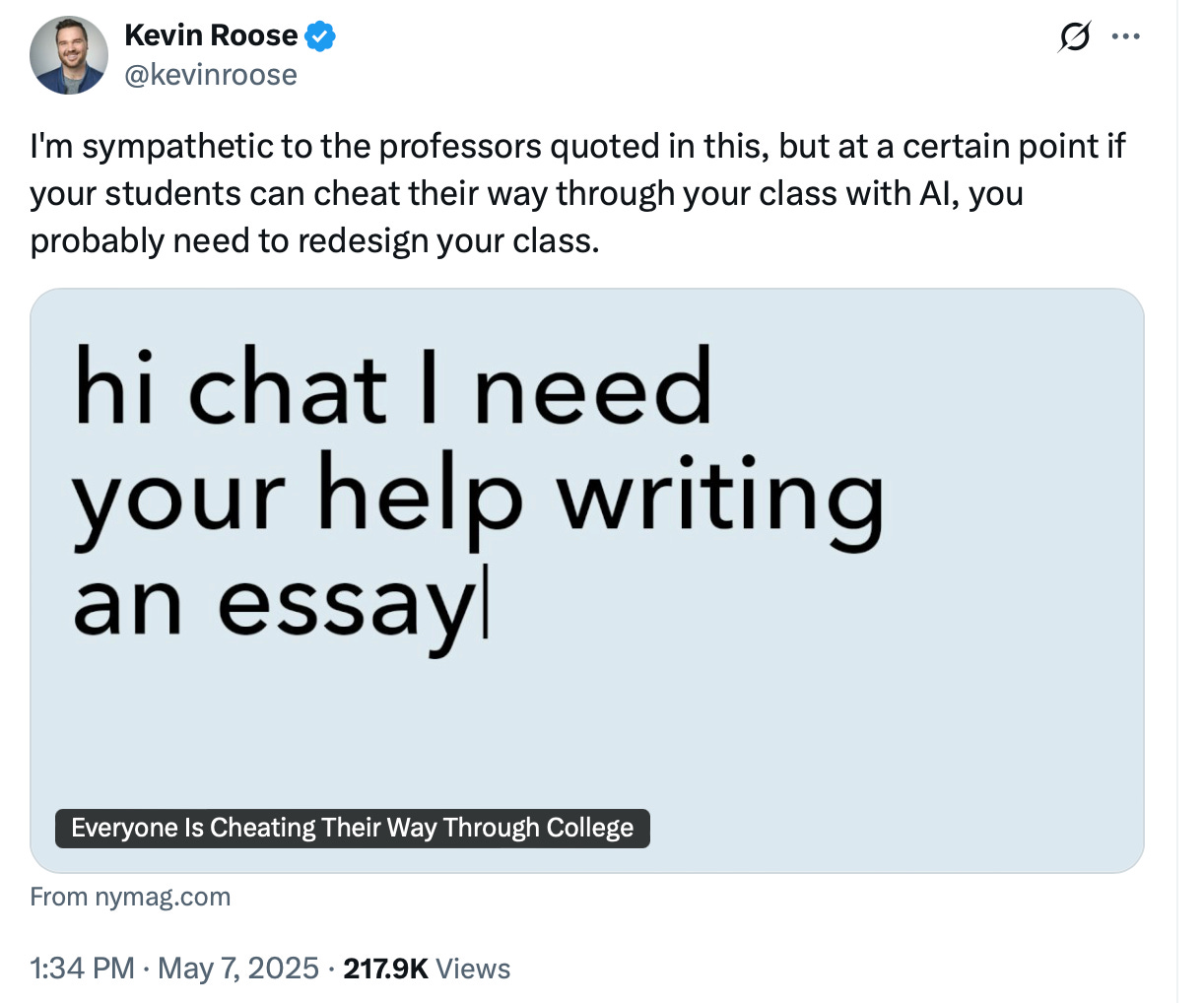This is New York Times tech columnist Kevin Roose on X: