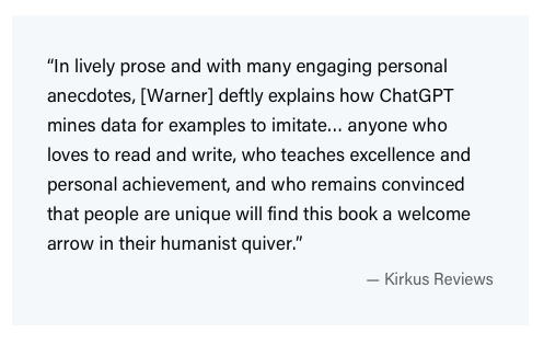 You can’t pre-order More Than Words: How to Think About Writing in the Age of AI anymore because now it’s just an order! Kirkus reviews thinks the book is worth your time!