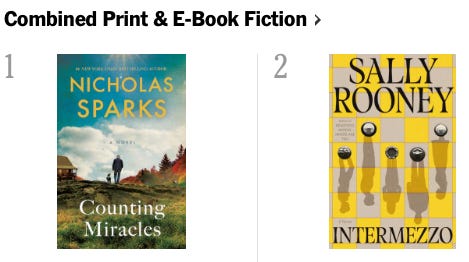In a previous newsletter about my enjoyment of Sally Rooney’s novels, I pointed out that while she’s a bestseller, despite being the subject of reams of cultural coverage, she is not a mega seller. In fact, her book was not the number one new work of fiction in the week of its release. That honor went to a very reliable mega-selling novelist.