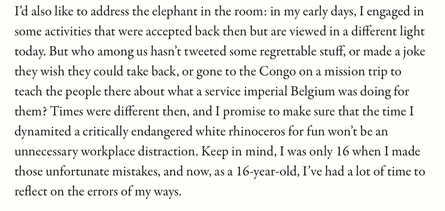 As someone who devoured all of the Tintin comics as a kid, clearly not understanding the white imperialist overtones of the tales, and mostly just enjoying adventure stories starring a kid and his cute dog, this piece from my friends at McSweeney’s had me crying with laughter” “Tintin, Famous Boy Reporter Applies for a Content Creator Job at a Digital Media Startup.”