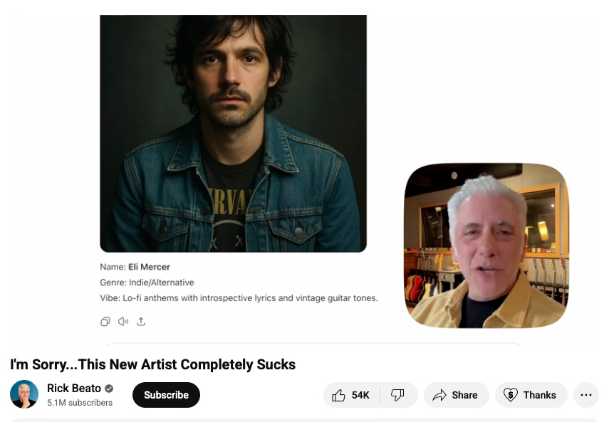 If you spend any time with AI “artist” Eli Mercer’s AI “song” we should agree with Rick Beato that while the song isn’t bad, it does indeed “suck.” It sucks because there is no spark of life. It is aural wallpaper.