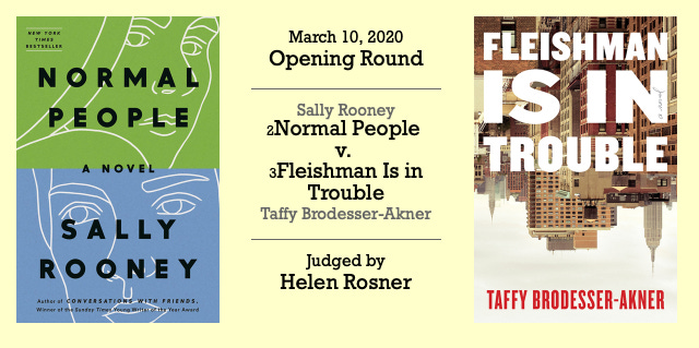 Rosner chose Fleishman Is in Trouble, though because of one of the quirks of the ToB, the Zombie Round (in which two eliminated books are returned to the action based on a pre-tournament reader poll), Normal People ended up as the 2020 champion.