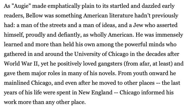 Yardley, writing about Bellow’s ambitions to write a “great American novel” with Angie March, describes what made Bellow’s work stand out in his moment: