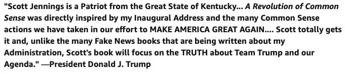 Here is Trump’s blurb of Jennings’ book, which I’m absolutely sure are words he actually said.